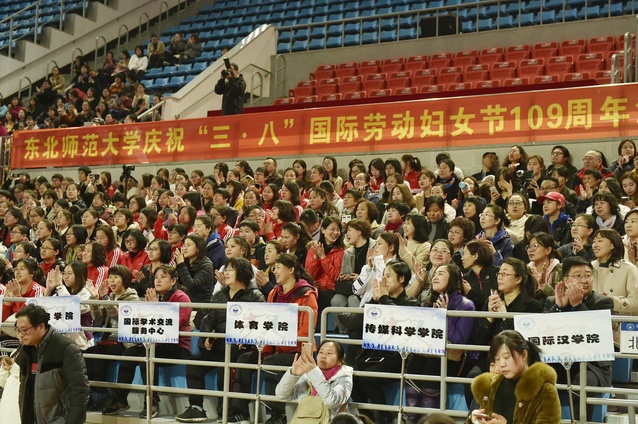 文体节目表演结束后,来自全校98支代表队的700余名女教职工参加了趣味体育比赛。经过激烈角逐,教育学部2队,物理学院3队,体育学院1队、2队,国际汉学院队,图书馆2队、5队,机关第二分工会1队,机关第三分工会4队、5队,共10支代表队获得一等奖,其余代表队获得二等奖。