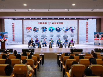 中国作协书记处书记邓凯、中国作协社联部主任李晓东、吉林省作协党组书记张丽,我校副校长邬志辉,文学院院长王春雨、党委书记解玲,来自全国各地的八位受邀作家,以及我校文学院的师生共同参加了活动。